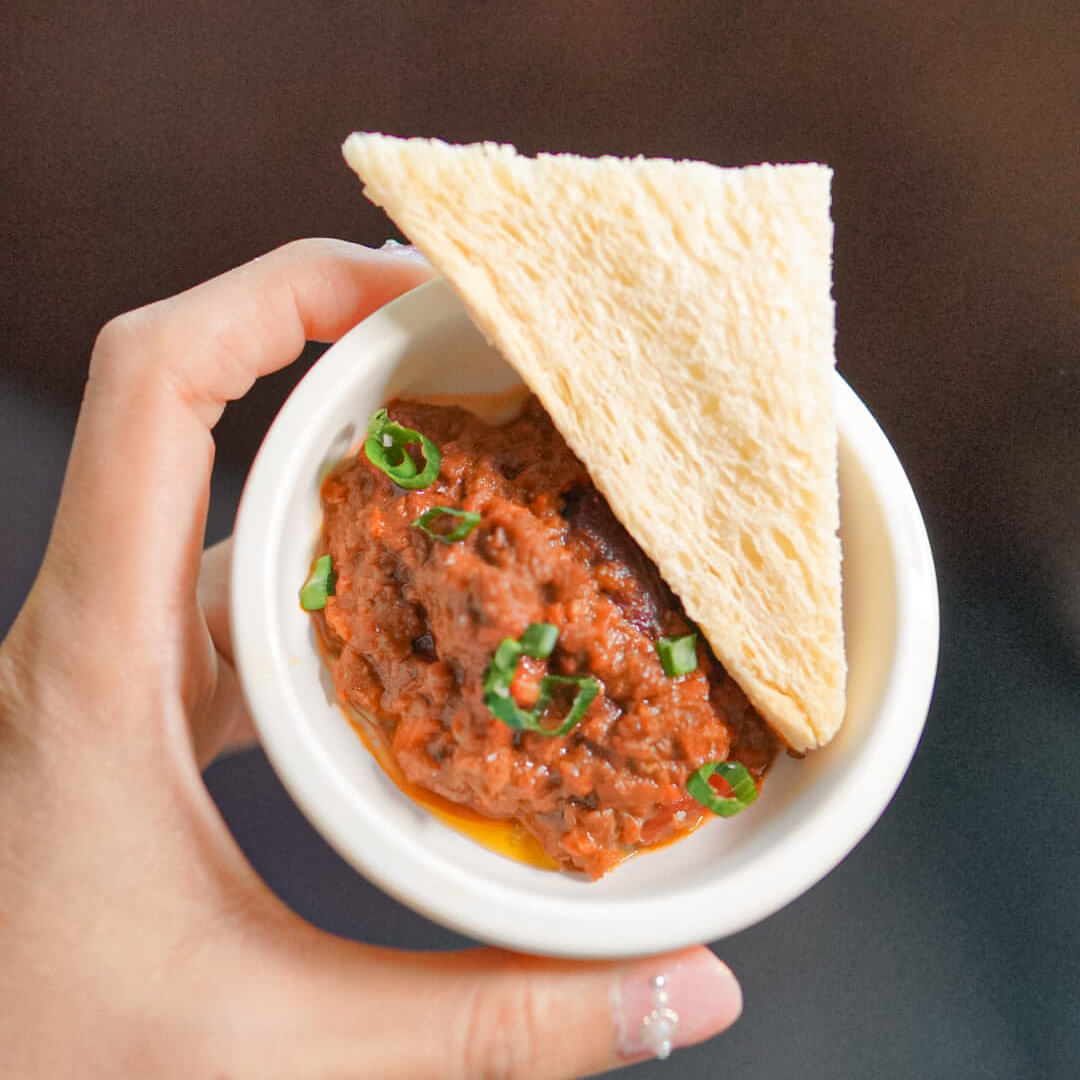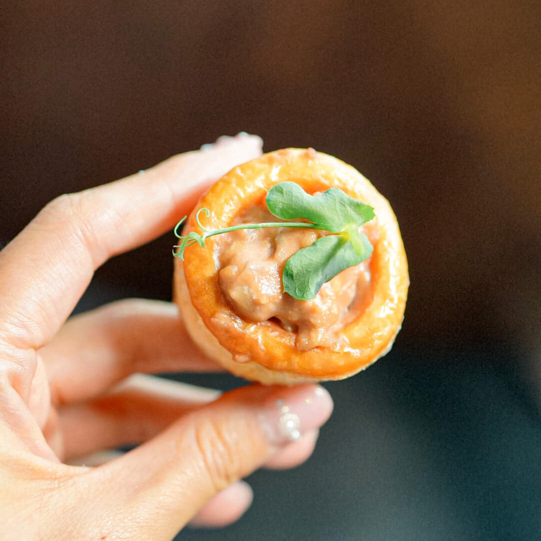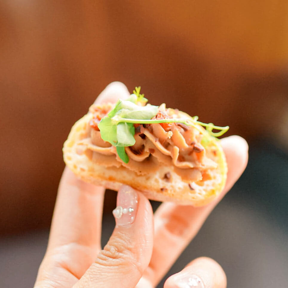 以Lindt朱古力設計嘅鹹點真係好特別!其中,我最愛朱古力墨西哥素菜醬,味道有少少似肉醬意粉汁,食時有啲紅腰豆及鷹嘴豆,點多士食好有口感。另一款煙肉栗子蓉朱古力多士都好特別,鹹鹹甜甜,香糯得嚟脆脆地。朱古力雞肉酥就正正常常,唔算太特別。