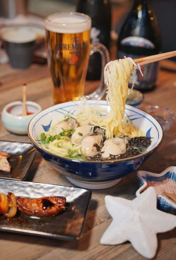 而小食更有超過20款,包括沙律、炸物、刺身等,當中主廚推介為蒜片欖油生蠔,橄欖油融入了蒜嘅香氣與生蠔的鮮味,湯汁清澈、散發著香濃嘅蒜味。此外,廣島蠔拉麵也是深受大眾歡迎嘅一道菜式,廣島蠔飽滿肥美,湯底清香,加上濃香蠔味;更有主廚設計出的Fusion菜式海膽忌廉意大利麵,用上鮮甜日本海膽,再淋上香味濃郁的忌廉汁,味道相當香口。