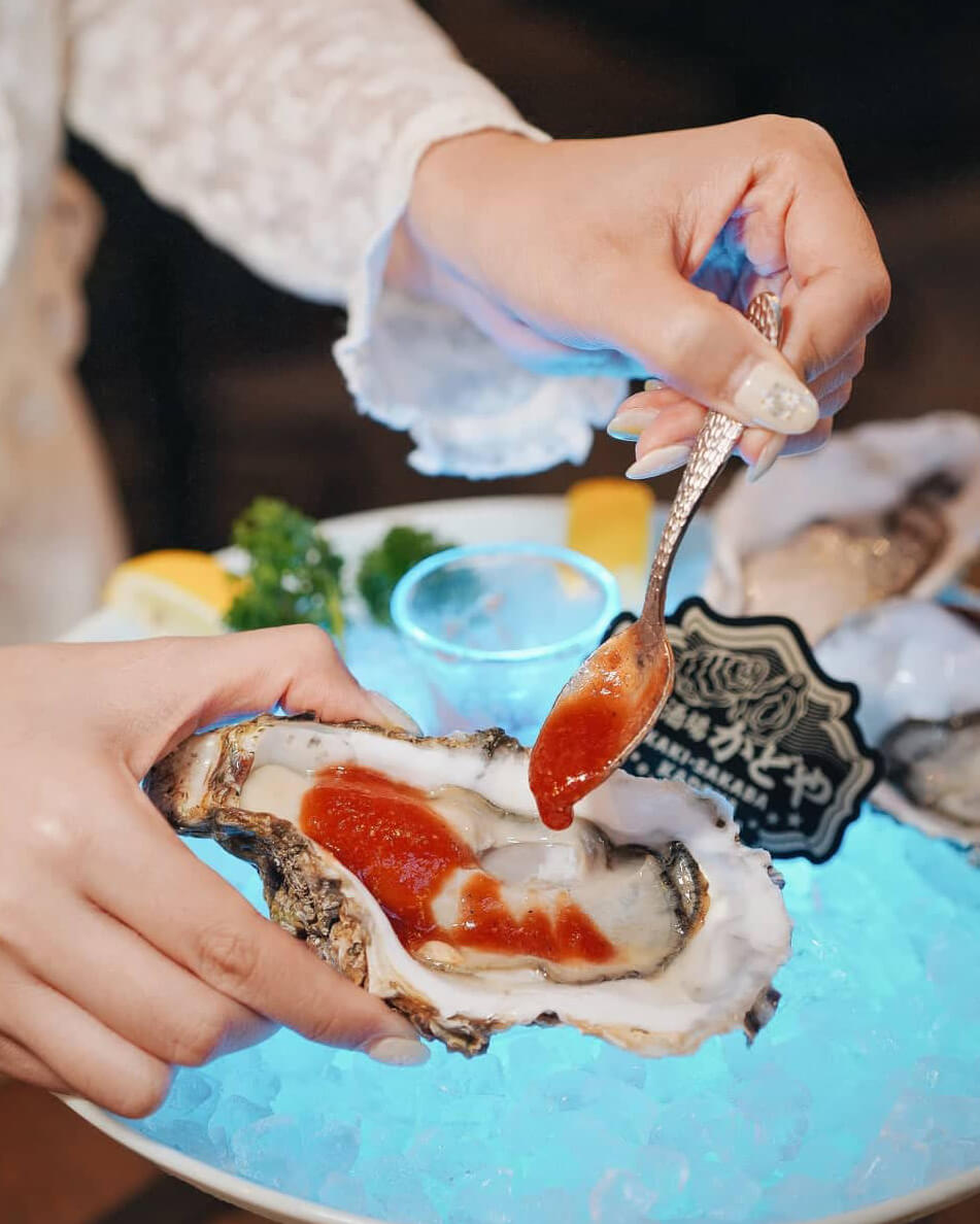 餐廳主打日本牡蠣料理,嚴選當季時令食材,專人每日喺日本為大家四出搜羅嘅新鮮牡蠣,凌晨2點將食材運到日本機場,下午4點到達香港。嚴選當造牡蠣,遍及北海道厚岸、佐呂間湖、小牧湖,以及岩手縣嘅釜石灣、大槌灣等地區。日本生蠔從蠔場產地直送。一共19個縣市、40個不同地方,每日大約提供10款。