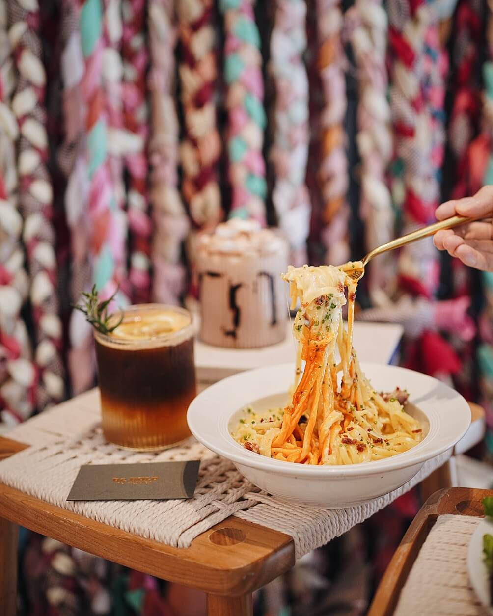 為突顯布藝主題,店內放置唔少用布條編成嘅裝置藝術,連Menu都特地設計成布辦般,非常別緻!此外,小編好鍾意Bold Coffee入面嘅書架,擺放咗唔少香港布業嘅相關書藉,仲有色辦簿、古董相機、織布等展品,活用空間展現布藝文化!