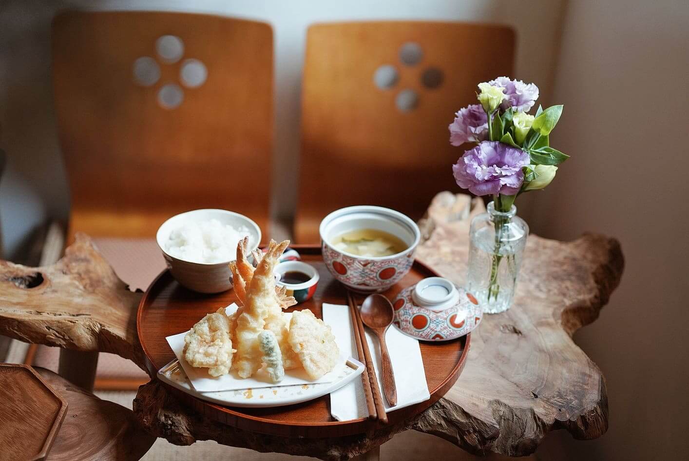 可能拍攝關係,食時凍咗少少,有啲可惜!不過食到個炸皮薄身,唔會一口油,相信熱食一家好正!天掃羅有2隻大蝦、蕃薯、南瓜及青椒等,跟飯及湯,我覺得呢個價都唔貴!