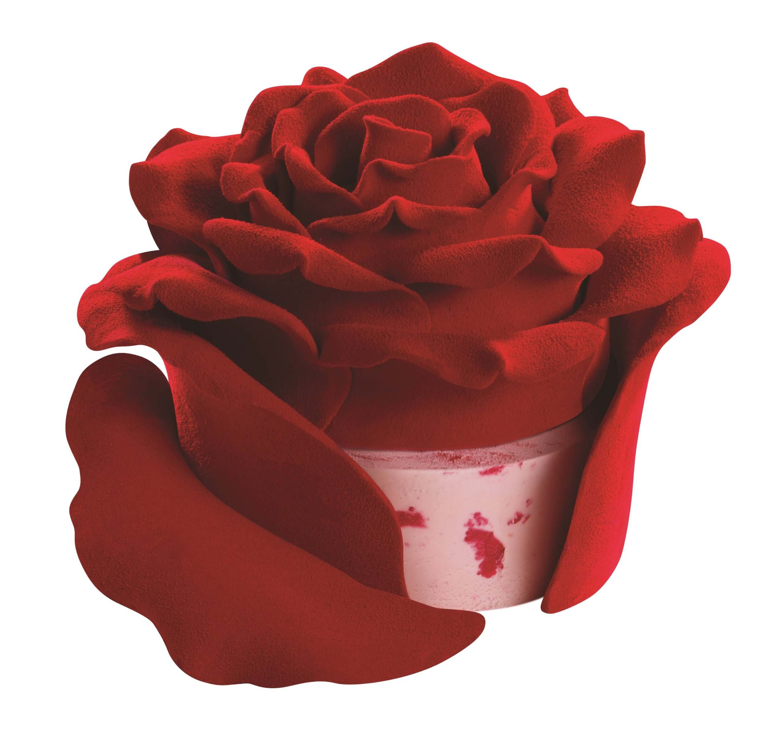 「紅玫魅影」雪糕蛋糕以3D立體設計,猶似一朵盛開的大玫瑰花,造型典雅瑰麗,吸睛度滿分。花瓣內藏士多啤梨口味雪糕,帶給味蕾最甜蜜的滿足。玫瑰更代表著永恆的愛情與勇敢,送給喜愛花的另一半絕對能讓她感受到禮物背後的真摯感情,甜蜜慶祝屬於彼此的節日。