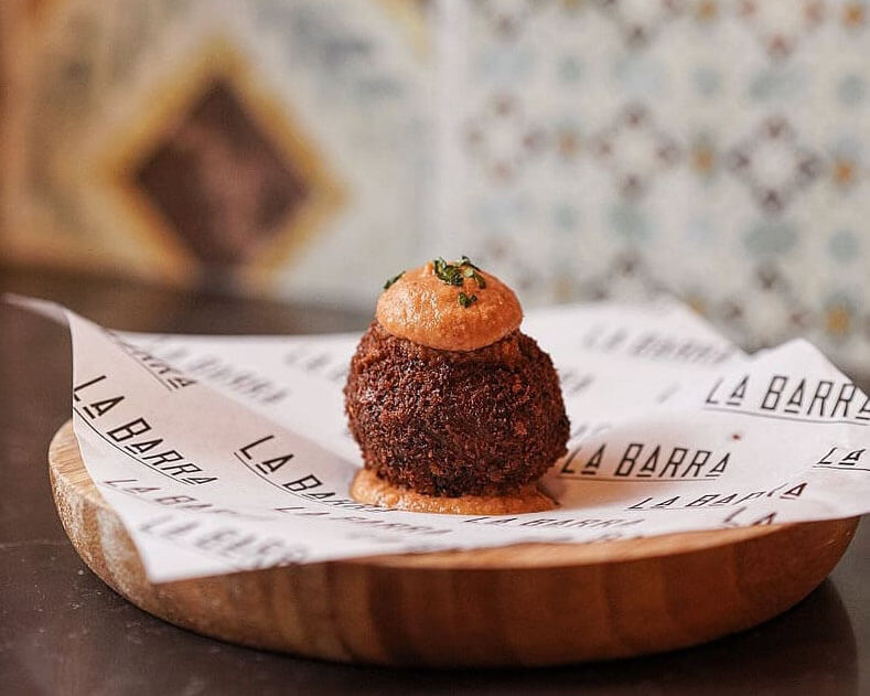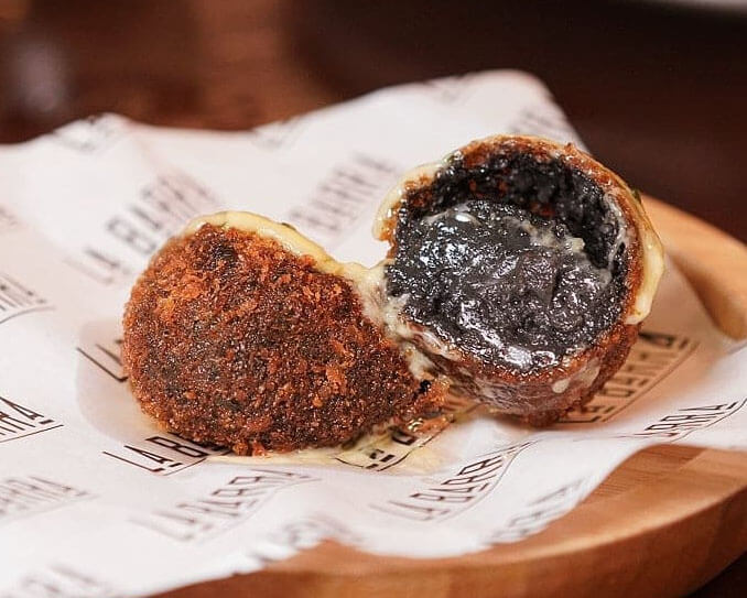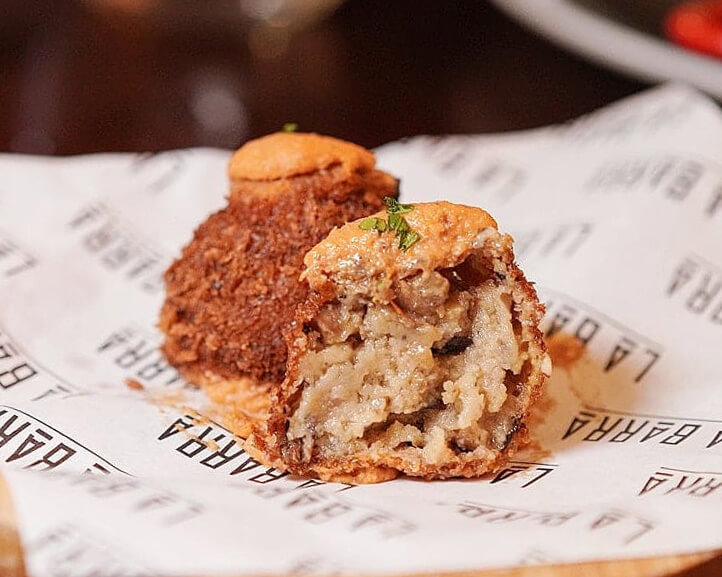 La Barra 嘅可樂餅有兩種味道,分別係松露蘑菇可樂餅及魷魚可樂餅,前者加入100%黑松露醬及鵝肝菌製成,店主仲加入花菇,令可樂餅嘅菇味更突出;後者加入墨魚汁和龍蝦湯炮製,仲有魷魚粒,口感豐富又鮮味,兩款都係佐酒佳品!