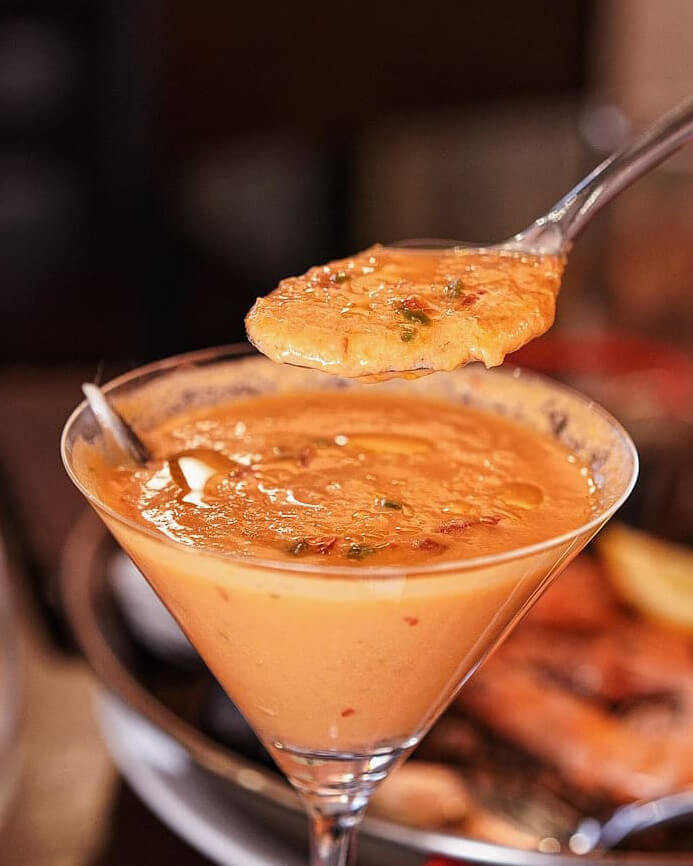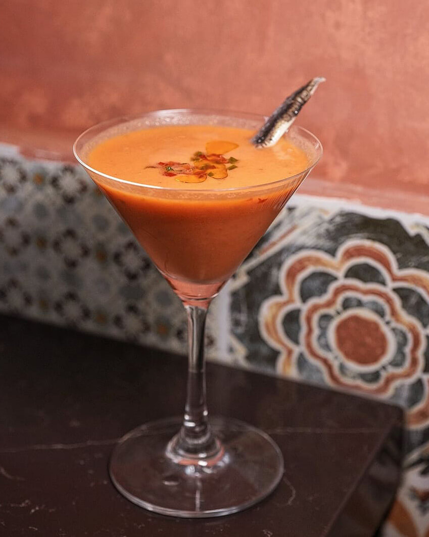 用高腳杯盛載,擺盤特別,味道係蕃茄、蒜頭加橄欖油嘅混合,飲到酸甜嘅蕃茄味和辛辣嘅生蒜粒,加上鯷魚嘅鮮味,清新得嚟又有層次感。