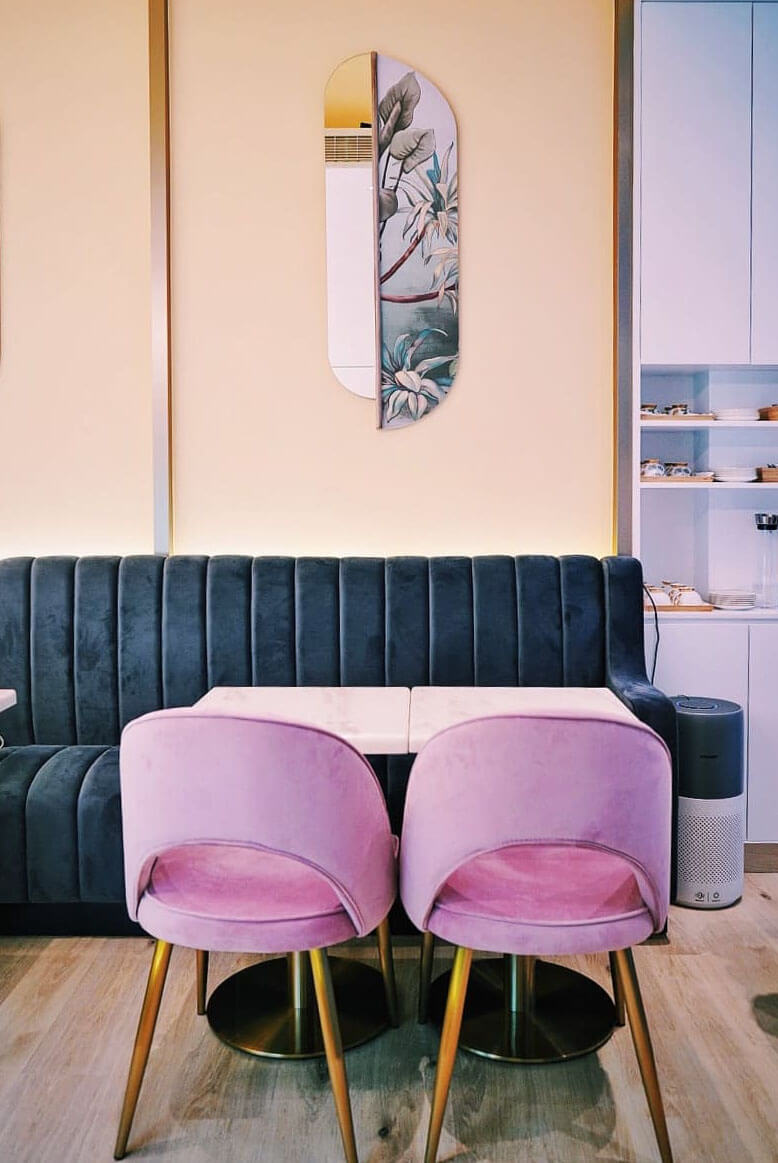 第一下去lanala覺得幾得意,店門用咗蘑沙貼,僅有一個圈圈窗可睇到入面,望上去好有別有洞天感!入到去則係優雅嘅法式風格店,粉紅+米黃調子,感覺真係勁igable!