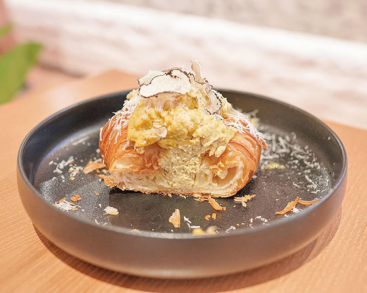 餐廳提供一系列全日早餐,當中一定要試招牌嘅松露炒蛋牛角包。喺嫩滑嘅炒蛋上,放滿即刨松露片,松露味濃郁,加上香酥鬆軟嘅巨型牛角包,足料又高質!