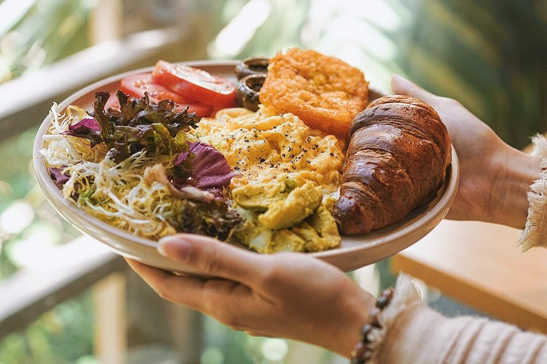 因為叫咗扒,我哋揀素All Day!有炒蛋、牛角包、牛油果、沙律、薯餅及厚切蕃茄,款式多多。炒蛋嫩滑、牛油果夠熟、牛角包香甜酥脆,基本上無咩好挑剔。