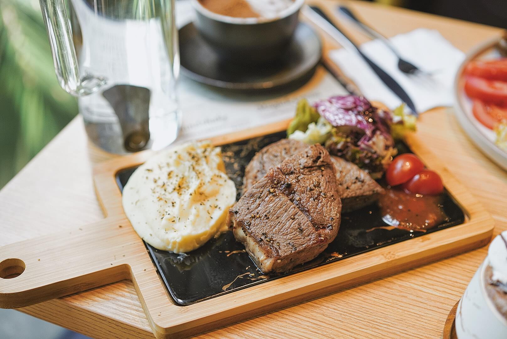 與中環店一樣,殤城逆流食物一貫高質,不走和風路線,料理較為西式,餓可揀份量大啲嘅牛扒餐或嘗招牌All Day Breakfast,口痕歎份手工蛋糕都係唔錯選擇。另外,特飲都好有詩意,以不同經典電影為靈感打造,好似《北非諜影》嘅Mocha系列、《阿甘正傳》嘅Cocoa系列、《驕陽似我》嘅Milkshake系列……充滿藝術氣息,加上窗外綠意盎然嘅樹景,別有一番風味。