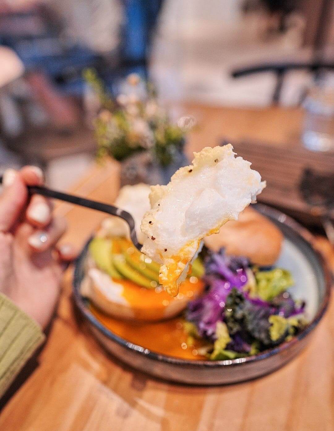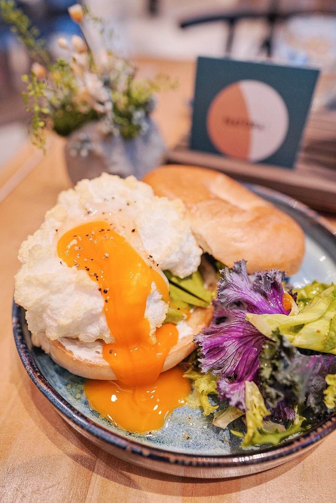 食物方面,NATURA:主打米芝蓮二星餐廳廚師主理嘅低碳飲食,好似雲蛋Bagel就是低卡健康之選。將蛋白打發再焗,打造成雲朵模樣,賣相好治愈。另外,店内亦提供多種口味窩夫,即叫即烤,必食有金沙芋泥窩夫,用鹹蛋黃醬及豬肉鬆製成,好有港式地道風味!