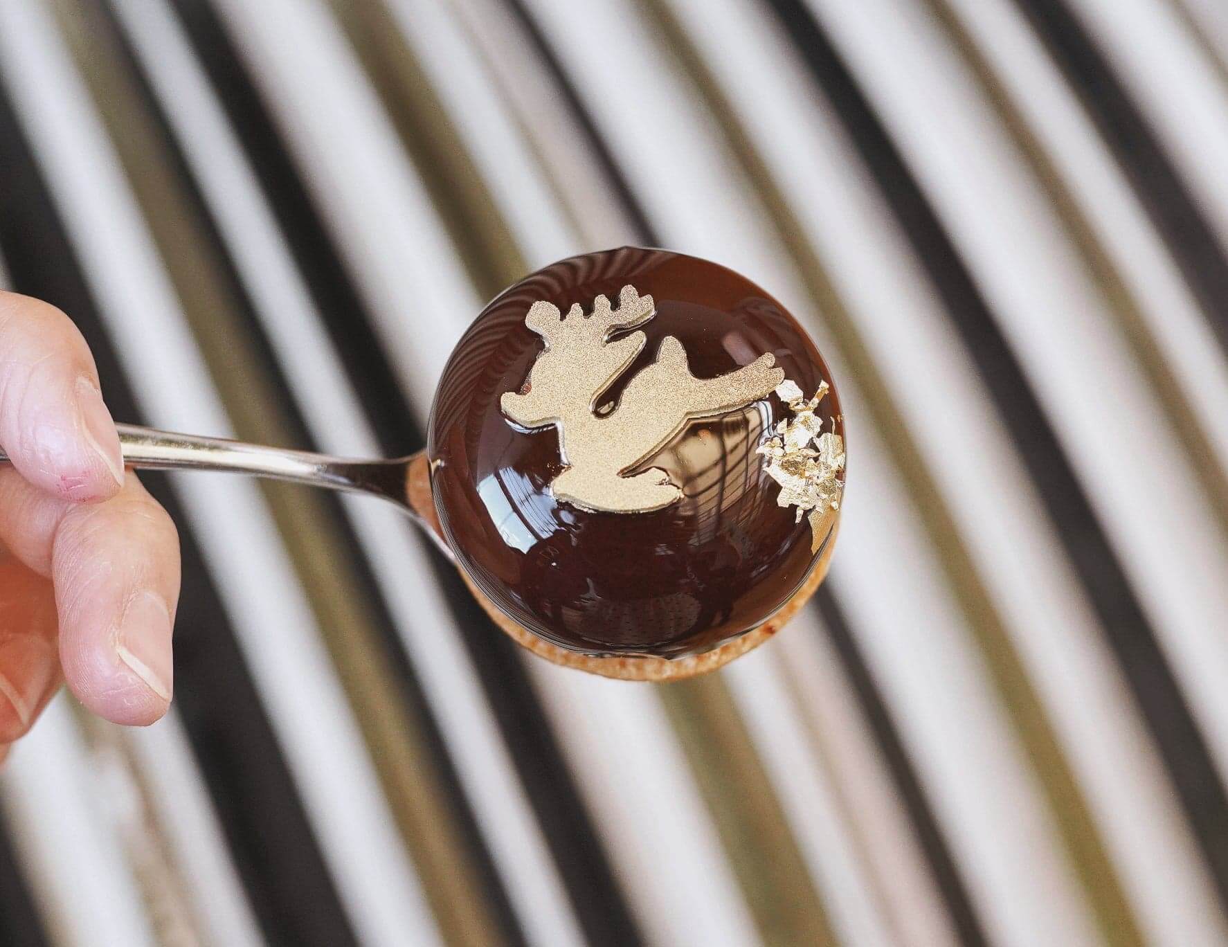 整個系列,小編最愛聖誕馬卡龍!上面有好靚的仿聖誕花裝飾(實際是玫瑰),下方是沾了金箔粉的紅莓,咬開鬆脆的馬卡龍外層,裡面是新鮮嘅紅莓肉及果醬,味道酸酸甜甜,好有層次感。另外,聖誕ICON朱古力小熊都很不錯,齋咬一口,味道略苦,但一浸入熱牛奶,即會變成一杯特濃朱古力!攪拌小熊,看著它慢慢溶化,雖然有點殘忍,卻非常有趣。另外,令我較難忘還有經典甜點車厘子黑森林,經過櫻桃酒浸泡的車厘子,外層脆脆地,帶有甘香,這陣味與可可香非常合拍,整個點路香濃有層次感,挺高質!